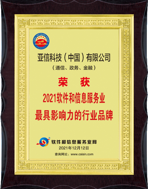 2021年7月 湖南亚信荣获“2021年湖南省软件和信息技术服务业十大名企”荣誉称号
