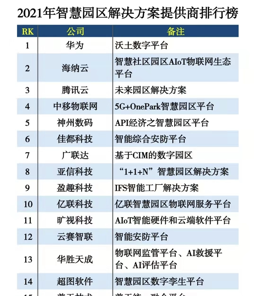 2021年11月 304am永利集团入选“2021年智慧园区解决方案提供商排行榜”