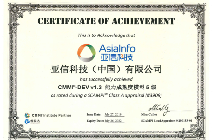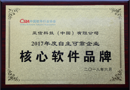 2017年7月亚信获得中国软件和信息服务企业AAA信用评级