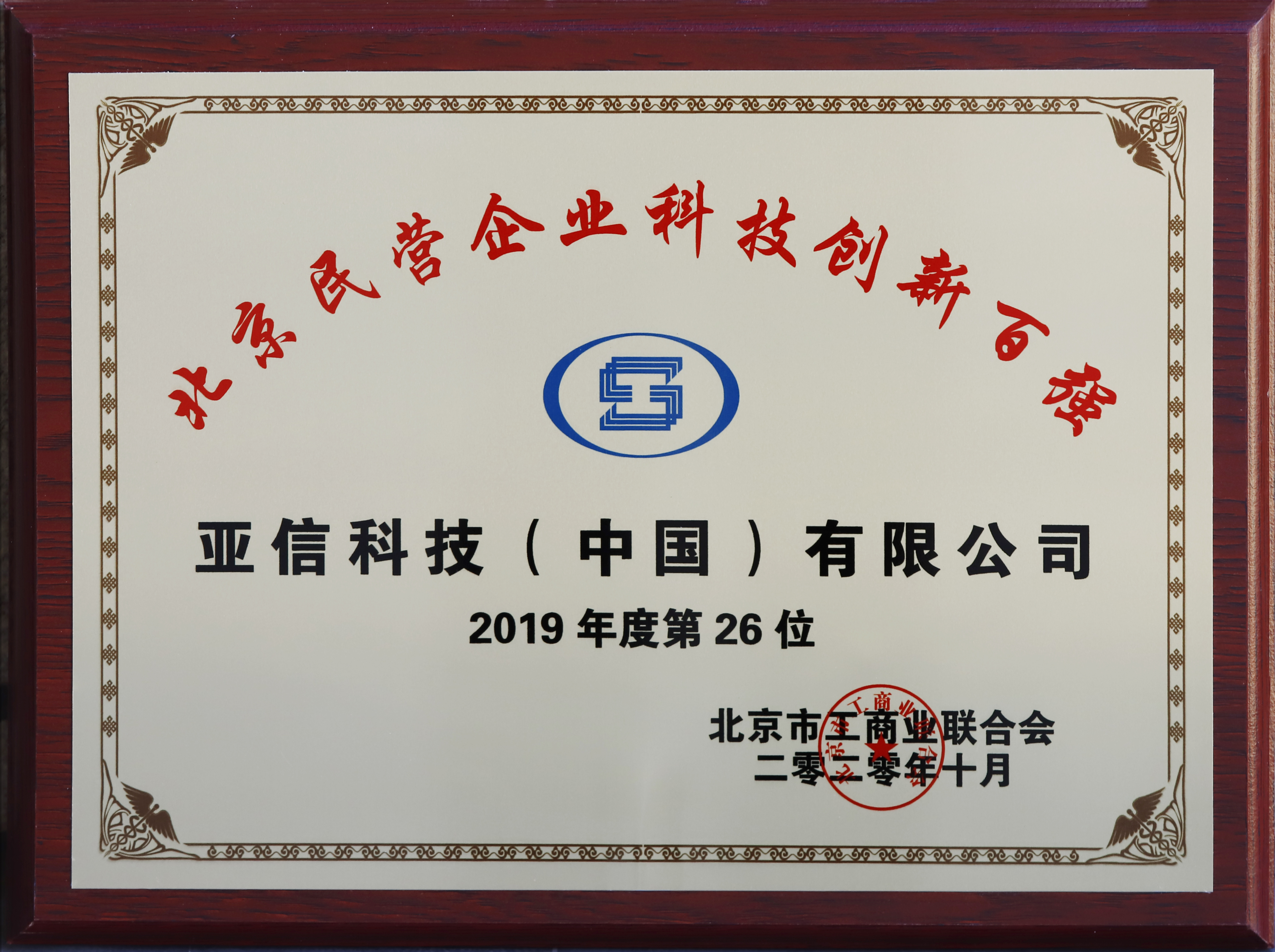 2019年11月 304am永利集团荣获“北京民营企业科技创新百强”