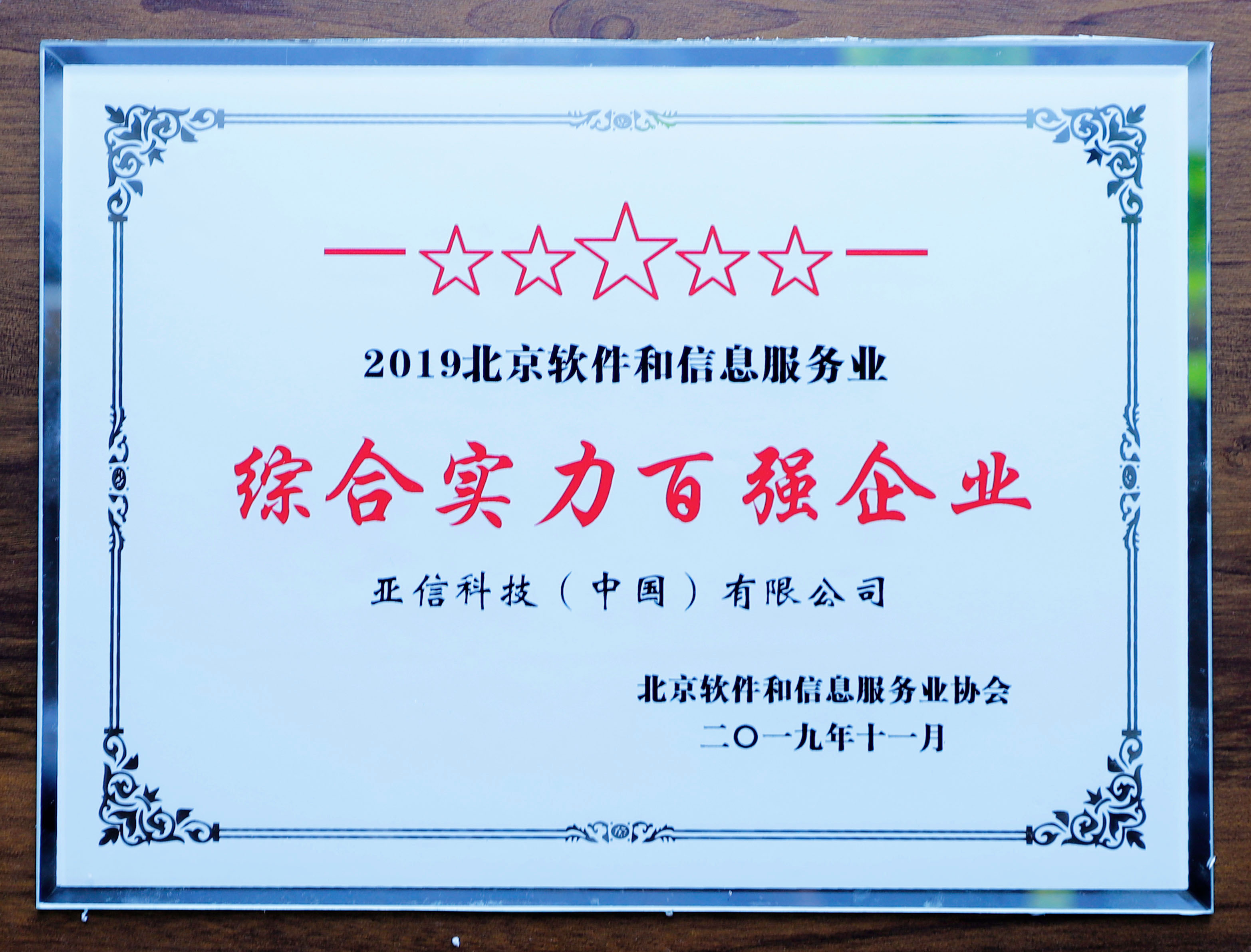 2019年11月 304am永利集团荣获“2019北京软件和信息服务业综合实力百强企业”