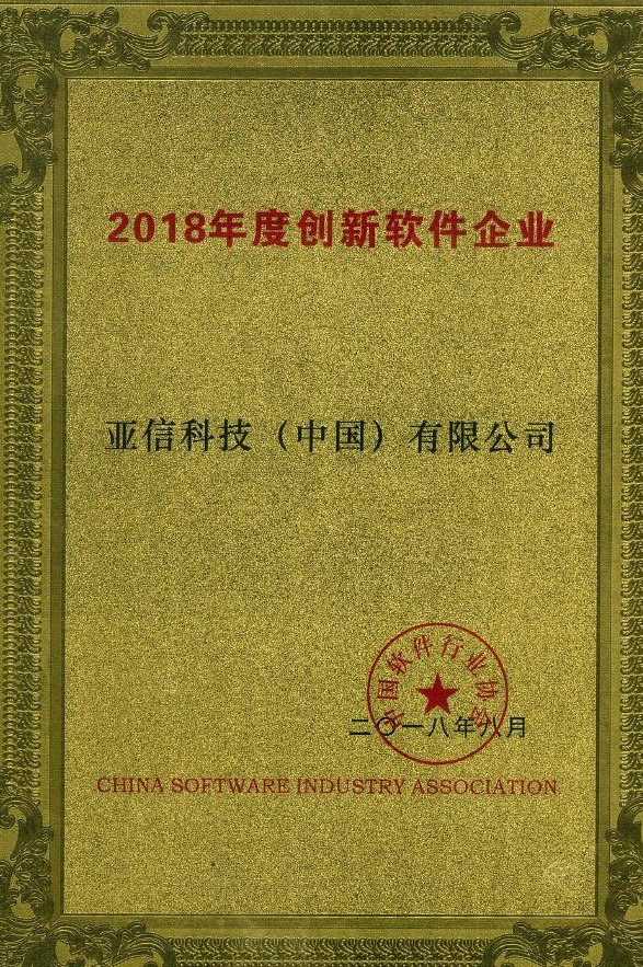2018年8月 304am永利集团荣获“2018年度创新软件企业”