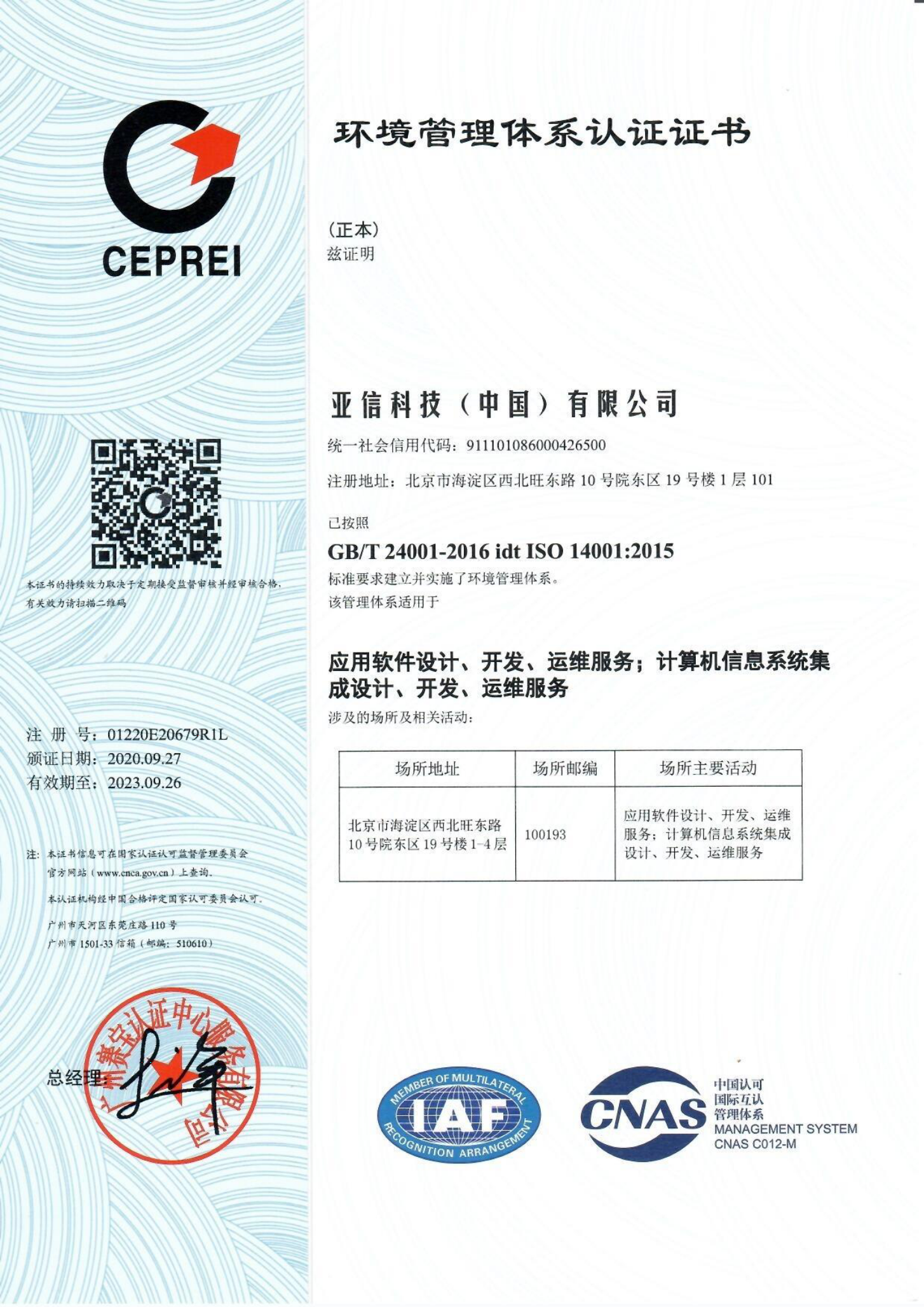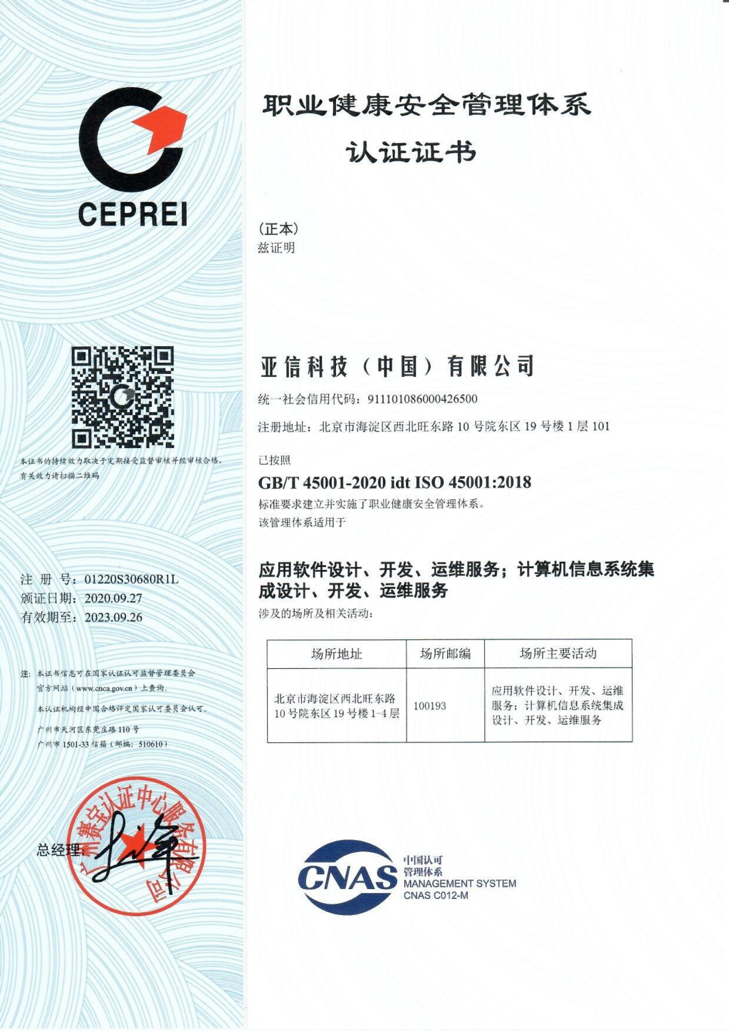 2017年12月亚信软件荣获《2017年度信息系统集成及服务大型一级企业》证书